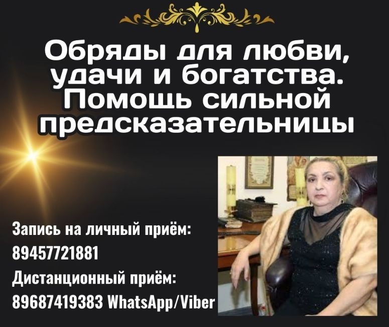 Если вы ищете помощь в сложных жизненных ситуациях, ясновидящая Галина Вишневская готова стать вашим проводником. Потомственная предсказательница из древнего рода венгерских целителей, она обладает даром видеть прошлое, настоящее и будущее. Её знания и опыт позволяют находить скрытые причины проблем и предлагать эффективные решения.