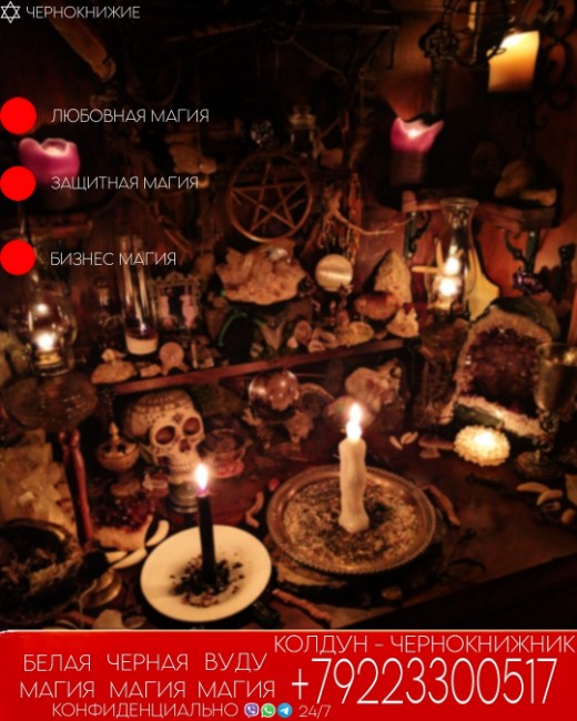 Надоели шарлатаны? Я - потомственный колдун с 18-летним опытом, предлагаю реальную помощь в решении самых сложных проблем. Работаю с мощнейшими ритуалами обрядовой магии, вуду, любовной и денежной магии. Гарантированное снятие негатива (сглазы, порчи), подчинение, наказание обидчиков.