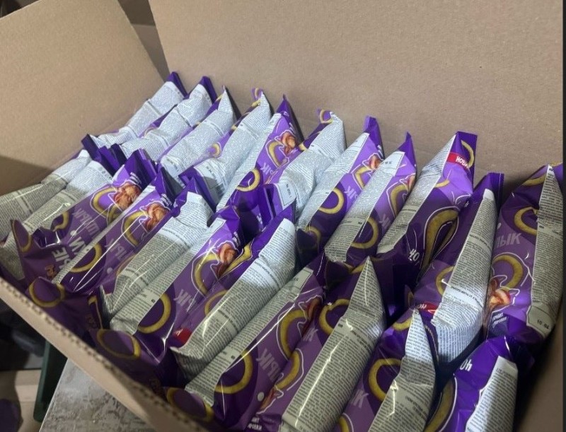 Упаковка, фасовка и маркировка чипсов, снэков, газировка. Мужчины могут везти на рохле газировку.