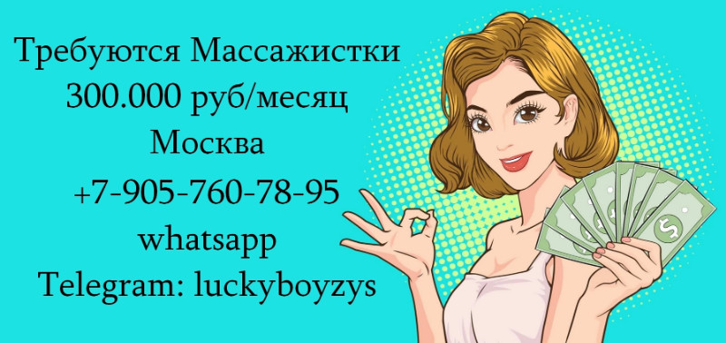 В поиске девушек на вакансию Массажисток. Работа в Москве. Приглашаем также девушек из других регионов. 300.000 руб ежемесячно - это гарантированная оплата. У нас лучшие условия! Пишите в whatsapp или telegram: luckyboyzys