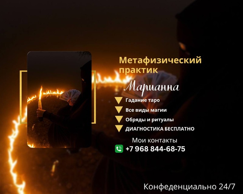 Не упустите шанс изменить свою жизнь к лучшему! Обратитесь к Марьяне Александровне прямо сейчас! Мои контакты +7 968 844‑68‑75