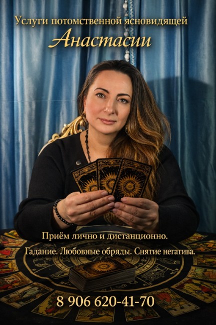 Анастасия работает честно, без запугивания и давления, не навязывает лишние услуги. Возможна дистанционная работа по фото и дате рождения, подходит для клиентов из любого региона. Конфиденциальность гарантирована.