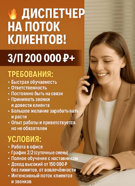- принимать звонки и довести клиента на салон, большой поток клиентской базы и горячие звонки