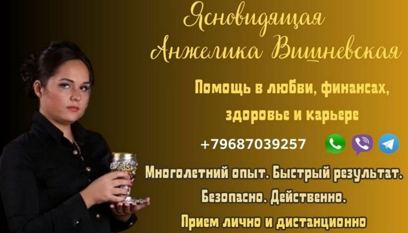 Ясновидящая Анжелика Вишневская помогает найти источник проблем и безопасно устранить его. Работа ведётся индивидуально, без давления и пустых обещаний. Консультации возможны лично или дистанционно по фото.
