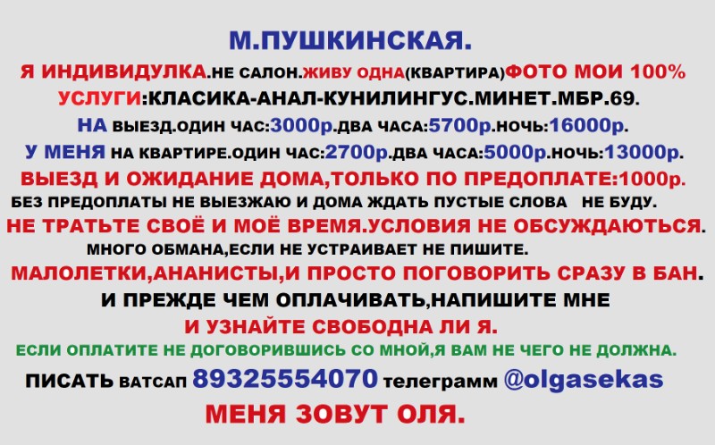 Я женственная, чувственная и немного загадочная. Со мной легко, спокойно и очень приятно. Я не просто компания на вечер, а настроение, к которому хочется возвращаться. Если ценишь тепло, внимание и атмосферу полного погружения — напиши. Мои мессенджеры для связи в чате: max ватсап 79325554070 телеграмм @olgasekas