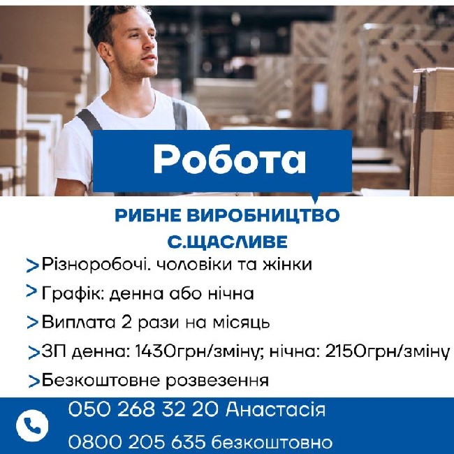 Шукаєте стабільну роботу з гарантованою оплатою та безкоштовним проживанням? Запрошуємо на харчове виробництво у с. Щасливе різноробочих!